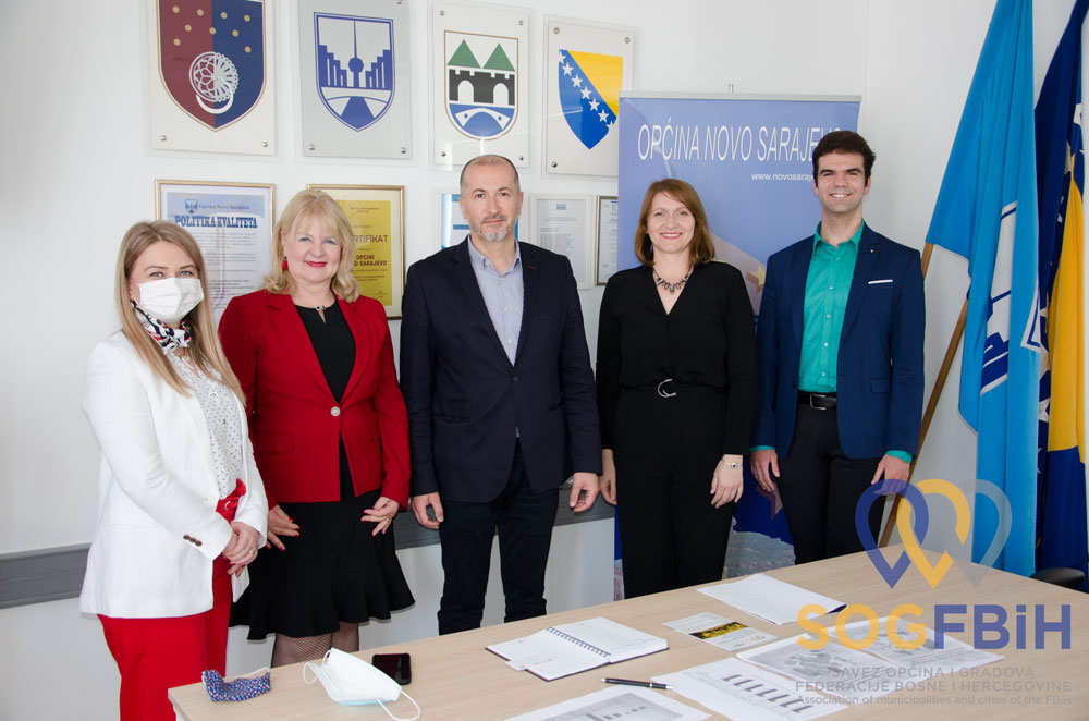 U Općini Novo Sarajevo, 17.05.2021. godine održan je sastanak dr. Hasana Tanovića, načelnika Općine Novo Sarajevo, i njegovih suradnika, s direktoricom Saveza općina i gradova Federacije BiH (SOGFBiH), Vesnom Travljanin, i njenim suradnicima.